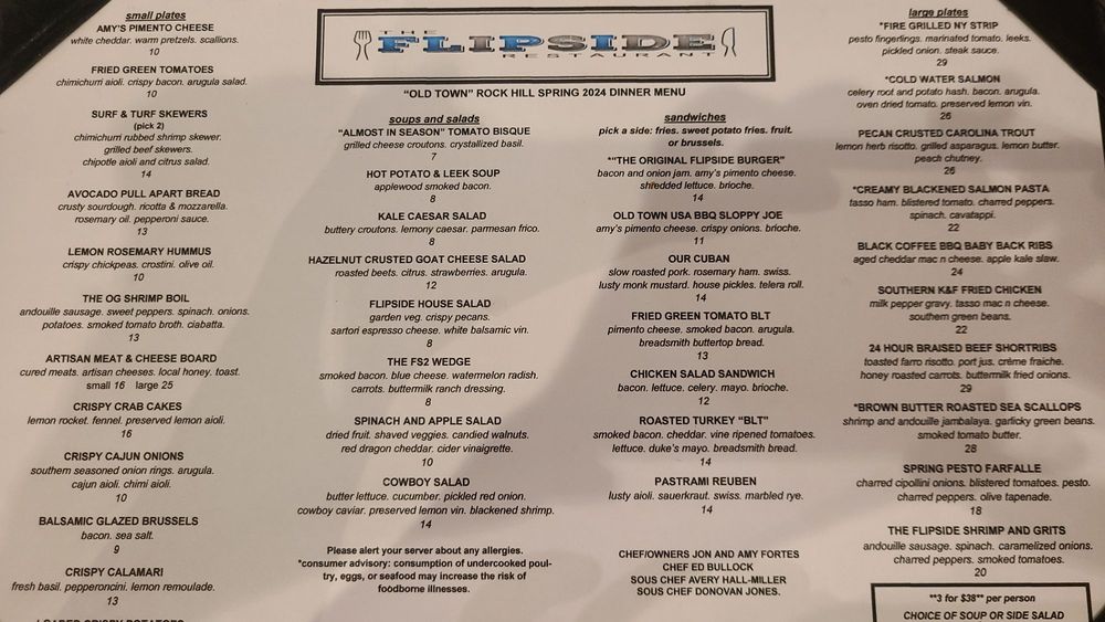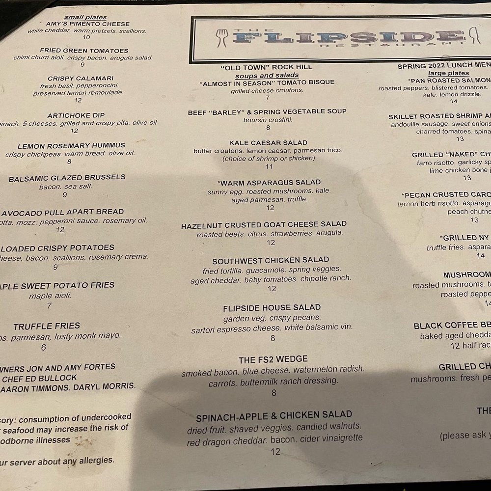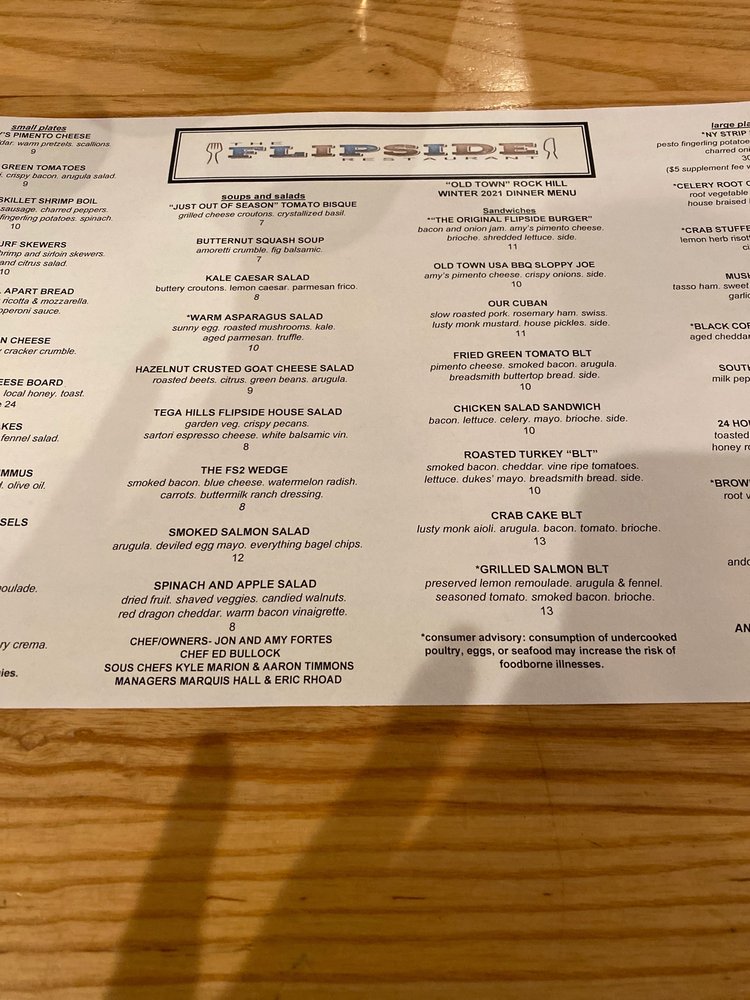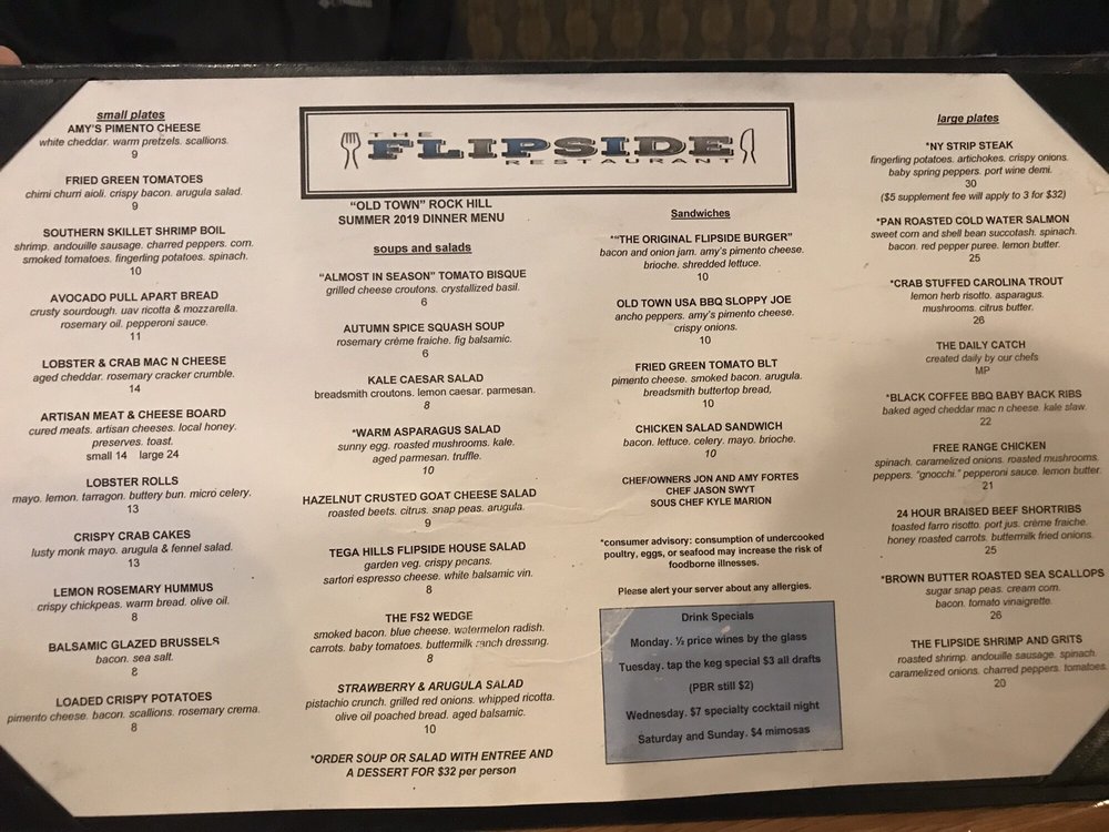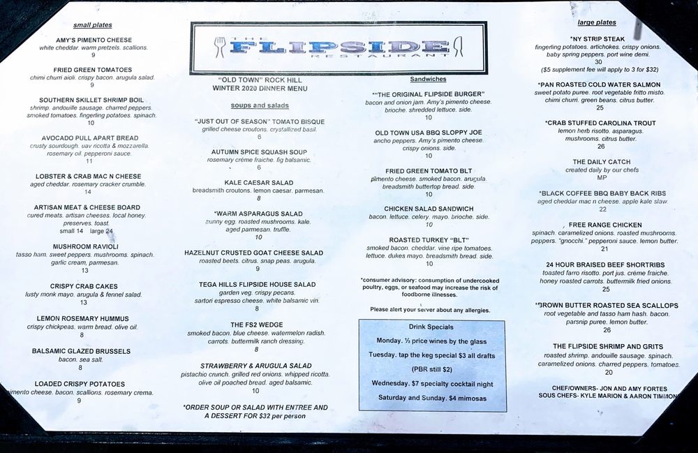 Welcome to The Flipside Restaurant, where Southern charm meets New American flair. Nestled in Rock Hill, SC, this casual yet trendy eatery offers an extensive menu that caters to both meat lovers and vegetarians alike.